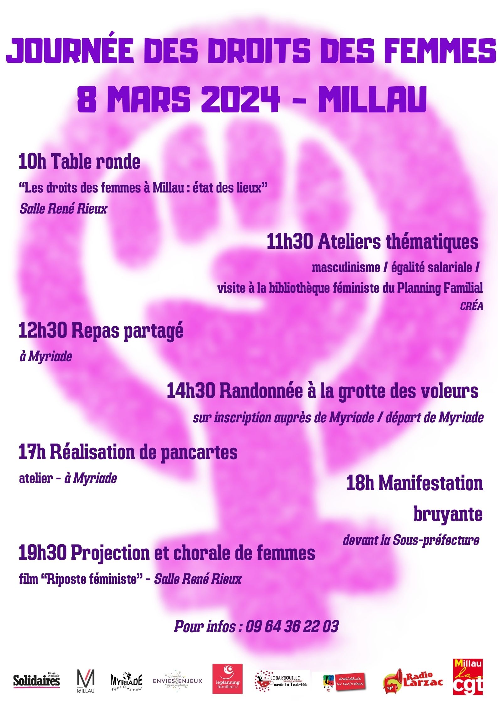 Grève féministe 8 mars 2024 journée internationale de lutte pour les droits des femmes 2024-03-07T12:05:51+01:007 février 2024|Catégories : À LA UNE| 8 MARS EN AVEYRON Rodez 12H 30 Place d’Armes Millau 18H Sous Préfecture et toute la journée: Villefranche De Rouergue 17H30 Kiosque St Jean Decazeville 17H30 Jardin public COMMUNIQUE FSU 8 MARS 2024 Communiqué Intersyndical 8 mars Communiqué intersyndical Tract des retraité.es 8 mars CP 8 MARS retraitées Texte unitaire pour le 8 mars APPEL FEMINISTE pour le 8 MARS Partagez cet article ! FacebookXWhatsAppTelegramEmail Articles similaires CDEN des 10 et 16 avril 2027 CDEN des 10 et 16 avril 2027 17 avril 2026 Appel 1er mai : Du pain, la paix et la liberté Appel 1er mai : Du pain, la paix et la liberté 17 avril 2026 Compte-rendu FSU du groupe de travail DGAFP du 13 avril sur les rémunérations dans la fonction publique Compte-rendu FSU du groupe de travail DGAFP du 13 avril sur les rémunérations dans la fonction publique 16 avril 2026 F3SCT du 7 avril 2026 F3SCT du 7 avril 2026 16 avril 2026 Ciné Débat « Les fleurs du manguier » 22 avril Ciné Débat « Les fleurs du manguier » 22 avril 14 avril 2026